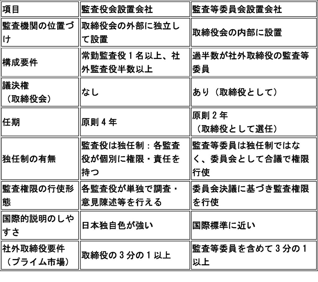 - 監査役会と監査等委員会の比較